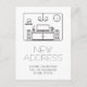 Let friends and family know your new address with these minimalist moving announcements. A black and white line drawing of a modern interior with entertainment center and house plants appears above the words "New Address" in deco-inspired font. Add your name and new address below.
