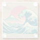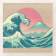 A contemporary reimagining of the iconic 'The Great Wave off Kanagawa,' featuring a soothing palette of soft blue, teal, and white waves accented by pastel pink and yellow highlights. The artwork includes a muted gradient sunset with tones of peach and lavender, harmoniously framing a minimalist depiction of Mount Fuji. This refined design blends traditional Japanese artistic elements with a modern, elegant esthetic, creating a visually calming and sophisticated piece. Perfect for art enthusiasts seeking a blend of heritage and contemporary style.