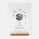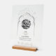 Create a sophisticated and spiritual ambiance for your Eid celebration with this modern Eid Mubarak acrylic sign. Featuring elegant Arabic calligraphy framed within a minimalist arch design, this piece blends tradition with contemporary style. The soft blurred background and clean typography add a luxurious and calming aesthetic.
