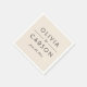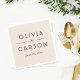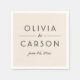 Bold black serif couple's names with a graceful script ampersand and date create a refined monogram design on a soft ivory napkin. The warm neutral background lends a romantic, understated elegance to your wedding reception, bridal shower, or engagement party. Personalize with your names and date. Also available in additional napkin colors.