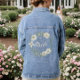Modern Ivory Floral Script Personalized Bride Denim Jacket
