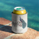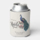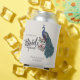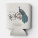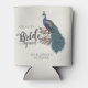 This Modern Ivory Peacock Bride Squad Can Cooler features a hand-drawn blue and teal peacock perched on Magnolia branches in full bloom in black ink and the title "Bride Squad" in elegant script, all against an ivory background. Personalize with bride's name, city and date by clicking on "Personalize this template" on the product page.