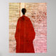 Infuse your space with quiet elegance and refined simplicity with this minimalist Asian-inspired wall art. Featuring the serene silhouette of a figure in a flowing robe, complemented by delicate red berries, this design channels traditional Japanese aesthetics with a modern twist. The warm earthy tones and subtle linear background evoke the beauty of washi textures and shoji screens, making it perfect for creating a peaceful, meditative atmosphere.