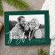 Wish friends and family a happy holiday with our Joyful Script holiday photo postcards. The modern holiday postcard features the word Joyful in a white, hand-lettered script overlay with your favorite photo framed in green. Personalize the postcard by adding your names, return address & a custom greeting.