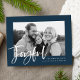 Wish friends and family a happy holiday with our Joyful Script holiday photo postcards. The modern holiday postcard features the word Joyful in a white, hand-lettered script overlay with your favorite photo framed in navy. Personalize the postcard by adding your names, return address & a custom greeting.