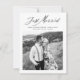 This modern minimalist black and white wedding elopement announcement features one front photo with elegant Just Married calligraphy script. Personalize the location and ceremony date details to let friends and family know where the private wedding took place. The back of this newlywed we tied the knot marriage announcement is sophisticated black, and the front is classic black and white. The photo will not automatically print in black and white, so if you would like to change a color photo to black and white please select that option during customization.