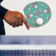 A beautiful modern kaleidoscopic pattern for this ping pong paddle, based on symmetric shapes filled with a vintage palette of green ( verdigris), light and cadet blue and copper rose.