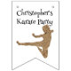 Modern karate silhouette with black typography on white background. Just perfect for your kid's karate birthday party. Please, personalize with your child's name, age and number suffix.