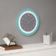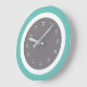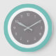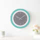 Modern kitchen wall clocks with contemporary geometric circles in teal, grey, and white with stylish clock face numbers on the clock in this wall decor clock design for your kitchen, family room, or any room in your house you want to add some character and style.