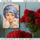 This vibrant portrait features a young woman with large brown eyes and a serene expression, dressed in a patterned blue head wrap and matching sleeveless dress. Her outfit is decorated with geometric shapes, circles, and shimmering gold accents, reminiscent of Gustav Klimt’s decorative style yet with a fresh, modern twist. The head wrap and statement earrings add a hint of bohemian flair, blending artistic sophistication with free spirited charm. The background continues the geometric motif creating a sense of depth and movement. Artwork similar to a stylized oil painting with mosaic and Art Deco influences……COLOR COMBINATIONS: Royal blue, crimson red, gold, cream, pink, beige……PERFECT FOR: Decoupage with an Art Deco or Klimt inspired theme, mixed media portrait projects, furniture upcycling with an artistic or boho twist, craft projects such as altered books and journals, and statement gift wrap...…... 🖤 NOTE 1. This design is available in two options: Left and Right. You can find them in the Collection shown below. If they don’t appear there, try searching for their unique identifiers: EC5L for the Left design and EC5R for the Right version….🖤 NOTE 2. The 18 lb tissue is a great choice if you like a little extra strength—it's easier to handle, resists tearing and allows for gentle repositioning. It’s also more opaque, making it perfect for darker surfaces. The 10 lb tissue is wonderfully lightweight and flexible giving you that smooth, blended finish. It’s ideal for layering on furniture or smaller projects so treat it gently and it will reward you with stunning results!.….🖤 NOTE 3. All items with this particular design share my unique identifying “Letter/s Number/s” label in the title for easy searching. …..🖤