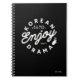 "Enjoy Korean Drama, All Day, Every Day. 24/7" NotebookGrey. Graphic is in a Dark Gunmetal GreyWhite Shade on a black background. Heart is purple. Both colors are editable by going into the Edit Design Tool.
