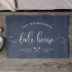 Modern, chic brush script reading LAKE HOUSE alongside your family name in a trendy typography driven design. Great custom lake house decor for your home away from home. Both romantic and stylish, our dusty navy blue door mat features a sweet canoe illustration between your location and the year established as well as your family name above.