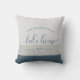 Modern, chic brush script reading LAKE HOUSE alongside your family name in a trendy typography driven design. Great custom home decor pillow for your home away from home. Both romantic and stylish, our muted tones of sand and dusty blue pillow features a sweet canoe illustration between your location and the year established.