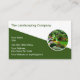 Cool modern Landscaper service business cards in a sleek modern design with landscaping emblem depicting a colorful landscape of flowers and shrubs and classic visiting card layout you can customize online. Works as a calling card for a Groundskeeper, Landscaper, or Gardener.