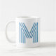 Relax as you sip your tea or coffee with this summery blue and white coffee mug featuring your monogram initial in large open modern text. Shown is the editable initial letter M. Want to order this mug with a different initial letter? Next to "Personalized this template", click on "Details", and change the initial letter. If you wish to change the text color, select a different font style, or resize / relocate the initial, click "Edit using the Design Tool", and make those changes. Enjoy! Designed by Heard_. #InitialMug #PersonalizedMug