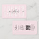 Modern Lashes Brows Beauty Salon Monogram Pink business card with QR code. Please feel free to ask me by DM if you need to add or remove social media icon before you make a purchase. Thank you for your support!