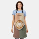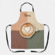 This personalized apron has a clean, top-down view of a mug filled with a meticulously crafted coffee beverage, featuring classic heart latte art in the foam.. The design is set against a modern, quartered background of warm, complementary colors. Ideal for baristas, coffee lovers, cafe owners, or anyone seeking stylish, contemporary kitchen and coffee station decor.