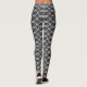 These modern, trendy leggings features a black geometric lattice all-over design with a gray background.