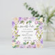 Purple floral wedding save the date card with a border of watercolor painted flowers in shades of pastel violet, lavender, lilac and ivory. This elegant non photo save the date is great for a couple who wants a save the date without pictures and is perfect for a spring or summer wedding.