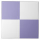 This minimalist ceramic tile features a modern checkered pattern in lavender and white. The colors are customizable in the Designer tool.