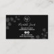 Black business cards with a grey leaf design for soap, candles, bath, body and skin care products.