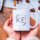 Modern Leaf Monogram Initials Newlywed Gift Coffee Mug