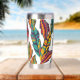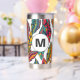 Colorful Tropical Leaves Pattern Monogram Personalized Thermal Coffee Glass.