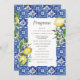 Modern Lemon Foliage Blue Mediterranean Wedding Program