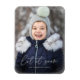 Celebrate the season with this modern Let It Snow holiday magnet featuring your favorite vertical photo framed by delicate snow flurries. “Let It Snow” is displayed in chic white calligraphy script with your family’s name beneath. A simple and elegant design that makes a festive keepsake, stocking stuffer, or personalized holiday gift for friends and family.