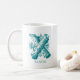 Elevate your morning routine with a customizable coffee mug showcasing a striking teal letter X in unique typography. Personalize it with your name using our easy customization feature, making each sip a special experience!