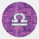 Modern Libra Zodiac Symbol on Fuchsia Digital Camo Classic Round Sticker