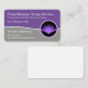 Sleek modern Licensed Massage Therapist business cards for a professional that does relaxing and therapeutic massage with logo emhlem you can use on our cards or replace with your own logo. Presented on high quality rounded corner business card stock.
