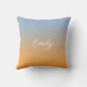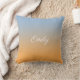 Modern Light Blue to Orange Gradient Script Name Throw Pillow