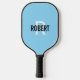 Modern light blue white monogram name mens pickle ball paddle. Personalize with your name and initial.
