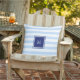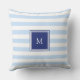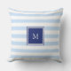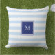 Modern light blue and white stripes pattern outdoor pillow. Scandinavian style.