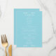 Designed to coordinate with your Modern Light Blue & White Wedding suite, this minimalist wedding menu brings refined elegance to your table setting. Featuring crisp lines, light accents, and a clean layout, it’s a timeless way to showcase your carefully curated meal. A perfect finishing touch for contemporary celebrations with elevated style.