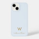 Modern Light Dusty Blue Gold Script Monogram iPhone Case