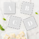 Customize personalize monogram initial or number pale light grey and white Square party coaster set. Also available in round shape.