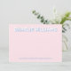Blank notecards with your name in a bold white font with a light blue shadow on a pale pink background.