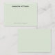 Light sage green or any color mini notecard with your name and custom text. They have a thin, subtle white border around the edge.