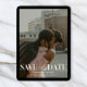 Inform your guests about your upcoming wedding date with these modern Save the Date Cards featuring a full bleed vertical photo, modern typography, QR code for your custom URL on the back and a colored back in a light sage green. All colors can be changed to fit your style and wedding theme, you can also switch between different paper shapes and sizes. Use the design tool to customize this Save the Date template to make even more changes if you like. Need help? Drop me a message!
