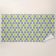 Modern beach towel features geometric hexagon pattern in 3 colors: white, gray, and lime green.