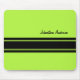 A modern mens fashion mousepad with sporty lime green and black racing stripes. Personalize by adding your name to this sleek neon sports car striped mousepad just for guys.