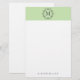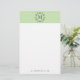 Add style to your stationery collection with beautiful, modern lime monogrammed stationery. The stationery's header features a lime green background, decorative frame, and custom monogram. The design's footer features a personalized placeholder that is perfect for your name and contact information.