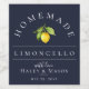 Pretty watercolor lemon and leaves, limoncello beverage label. Designed to match our Citrus Orchard Collection. Background color, shown in navy blue, can be customized.