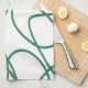 Modern Line Art: Green on White Kitchen Towel