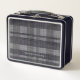 Modern Linen Plaid Pattern with Name - black grey Metal Lunch Box