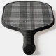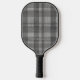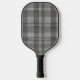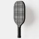 Modern Linen Plaid Pattern with Name - black grey Pickleball Paddle