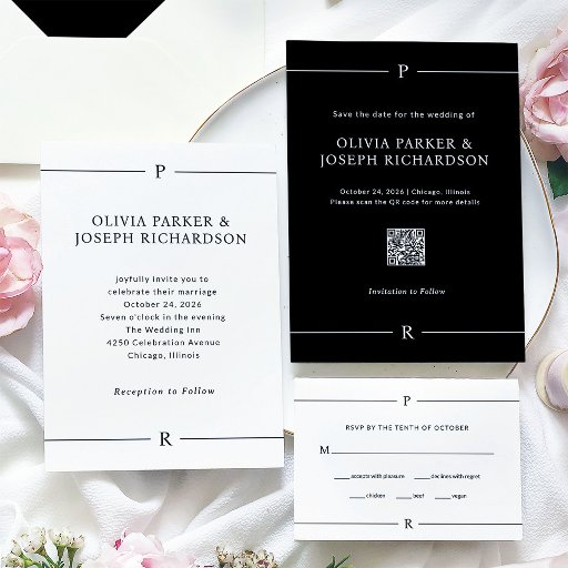 Modern Lines and Monogram Black and White WeddingDesigned by Christine Kovacs