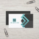 Modern Lines Aqua and Charcoal with QR Code Business Card